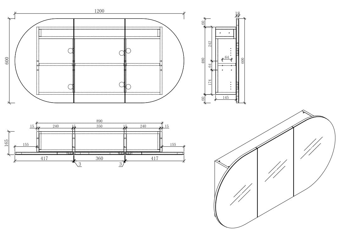 • MIRO MILAN120 MILAN Mirror Shaving Cabinet 1200x600x165mm