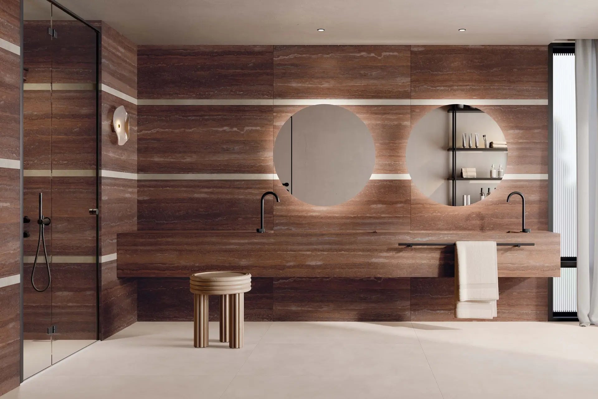 The Sensi Roma Red collection by ABK Group captures the timeless elegance of Travertine, reimagined through advanced porcelain technology to bring the enduring beauty of Rome’s iconic stone into contemporary design. With its rich tones and natural character, this collection offers a sophisticated and warm aesthetic suitable for modern interiors.