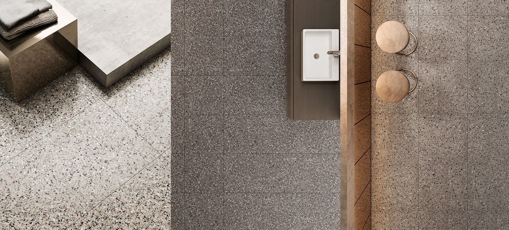 “A collection inspired by the Venetian terrazzo flooring used since ancient times in Greece. It then reached and became widespread in Italy, first of all thanks to the ancient Romans and then to the Venetian nobles.”