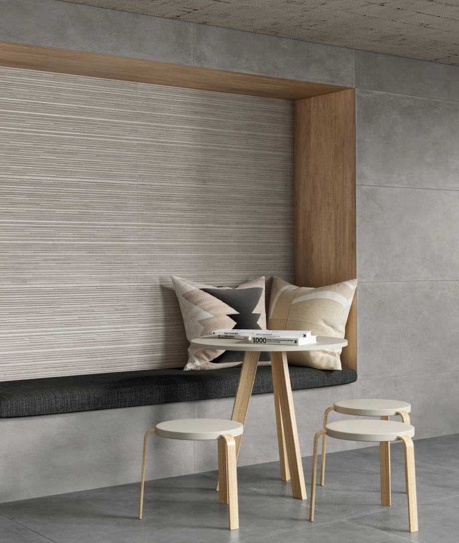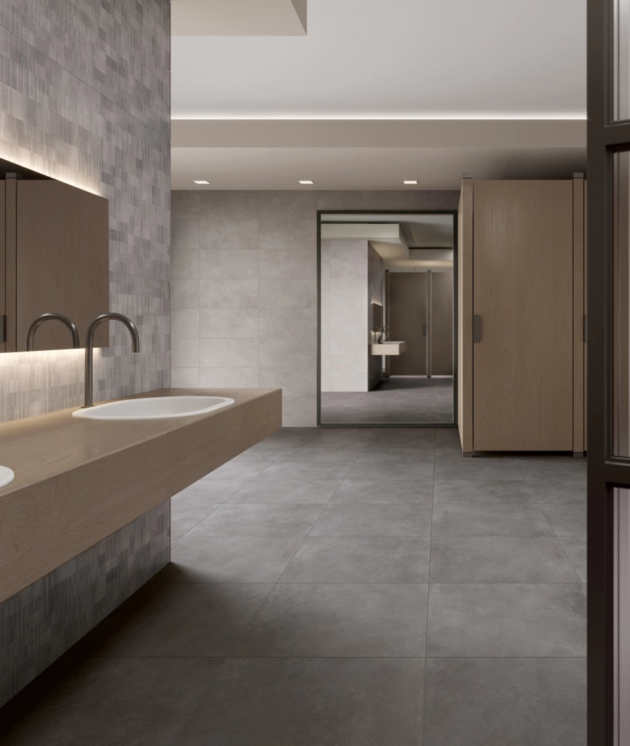 Collection Overview The Glitch collection, a collaboration between Piemme and the globally acclaimed design studio Benoy, is a distinctive range of porcelain stoneware tiles in a natural finish. Inspired by the trend of embracing individuality and celebrating imperfections, Glitch captures the raw, heterogeneous beauty of concrete. The collection showcases natural imperfections such as cracks, patinas, scratches, and weathering, artfully reinterpreted as elegant ceramic surfaces with a natural, matte-like finish that enhances their authentic, tactile appeal.