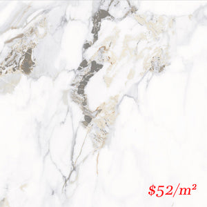 Enhance your space with the elegant beauty of Calacata Oro tiles, designed with a classic white background and luxurious soft grey and gold veining. Perfect for creating a high-end, timeless look in kitchens, bathrooms, living areas, or feature walls.